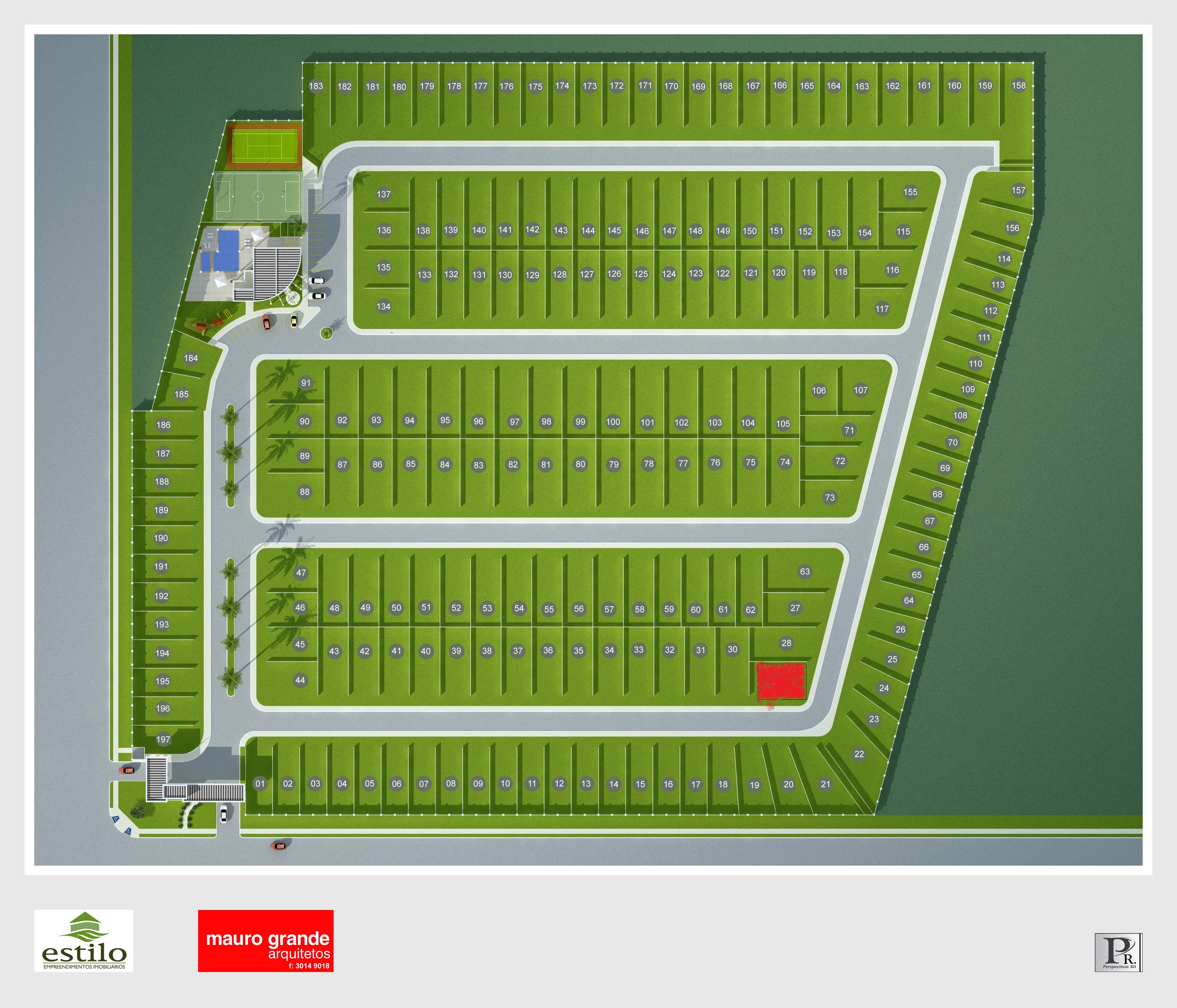 Condomínio: Infraestrutura completa, visando conforto e sofisticação, vestiários masculino e feminino, estacionamento para visitantes com capacidade para 25 veículos, portaria e guarita 24h com equipamentos de segurança, portões automatizados, previsão de circuito interno com monitoramento, muros externos altos com cercas elétricas em todo o perímetro, entrada dos moradores separada dos visitantes, ruas asfaltadas, redes subterrâneas de energia, TV a cabo, telefonia e interfone, esgoto sanitário e drenagem das águas pluviais.