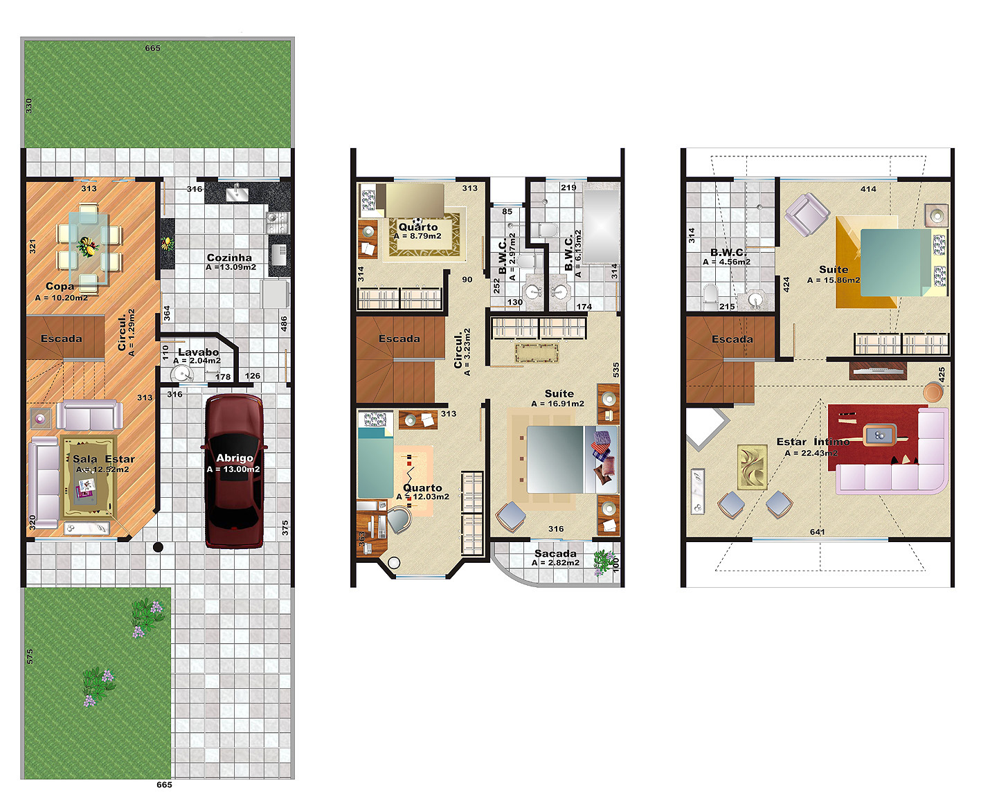 Metragens com variação entre 177,86 m² a 197,24 m².
