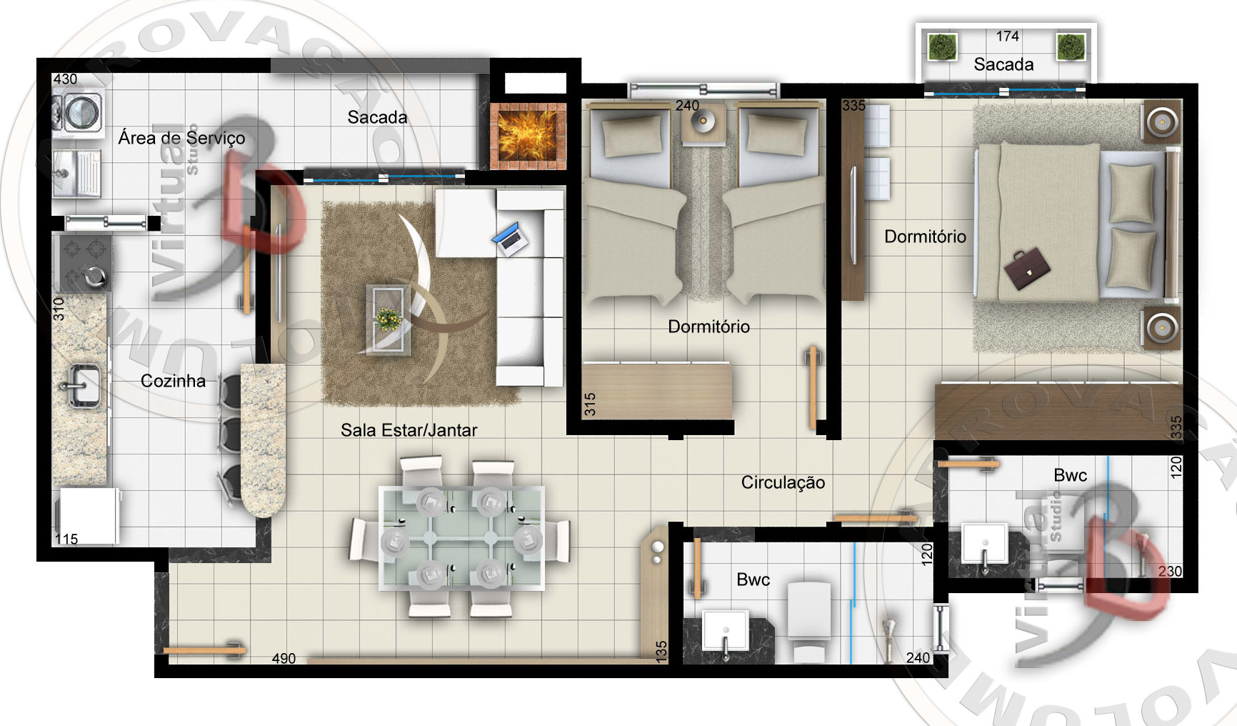 Contempla: Planta c/ ótimo dimensionamento dos espaços compostas por: Living p/ 02 ambientes (estar e jantar), sacada c/ churrasqueira a carvão, cozinha tipo americana, área de serviço independente, banheiro social e 01 vaga de garagem coberta.
